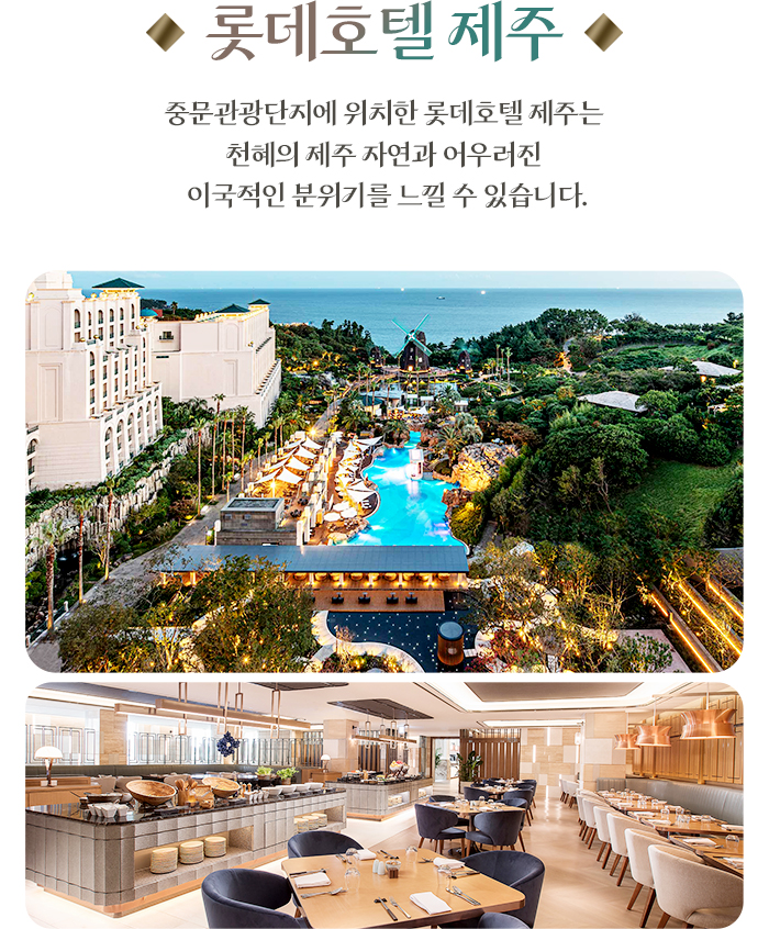[제주 에어카텔] 다인오세아노호텔(애월) 1박 + 롯데호텔(중문) 2박 자유여행 4일